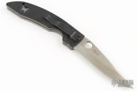 This 800FS Linerlock folder by Benchmade has a satin finished blade with partial serrations, thumb hole, and notched thumb rest. Handle is black G10 over titanium liners, black fiber back spacer, lanyard hole, and black stainless steel tip down clip. Comes with original box. Has a couple light scuffs, excellent condition otherwise.