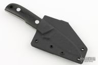 This K-6 Companion by Dozier Knives features a satin finished blade, .147" blade stock and .984" blade depth, full tang construction. The handle has black linen micarta scales with aluminum pins and lanyard hole. Comes with a right hand horizontal kydex sheath. Has a couple light scuffs, excellent condition otherwise.