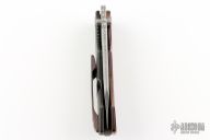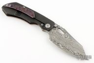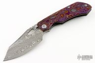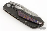 This Evolution 3.0 by Custom Knife Factory features a Damasteel blade with notched thumbrest and thumbhole. The handle has a ZircuTi scale, black bark finished titanium frame with a tip up ZircuTi clip and black backspacer. Comes with original case, cloth, and COA. Nice detent, lockup and blade seating. #68 and dated 9-22. Excellent Condition.