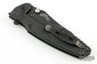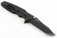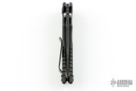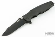This 0392BLK from Zero Tolerance is part of their "Factory Custom" series. It features a black blade with swedge, dual thumb studs, notched thumb rest and flipper. The handle has a black titanium frame over black barrel spacers, black screws and 3 way adjustable pocket clip. Original box and COA. Excellent condition. #0155