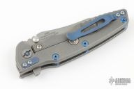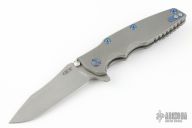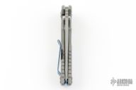 This 0392 from Zero Tolerance is part of their "Factory Custom" series. It features a working finished blade with swedge, dual thumb studs, notched thumb rest and flipper. The handle is comprised of a working finished titanium frame over anodized barrel spacers, screws and 3 way adjustable pocket clip. S/N of 0205. Original box and COA. Excellent condition.