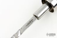 This Sword Cane by Gil Hibben has a dark wood shaft and cane, brass handle. The blade is mirror polished and double edged, fileworked ricasso and spine, .198" blade stock and .372" blade depth, hidden tang construction. Has a few light scratches, otherwise excellent condition. The "Closed Length" below is the total length of the cane when it is assembled and the blade is hidden.