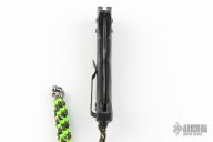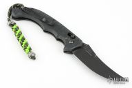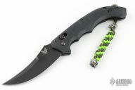 Well-balanced, symmetrical, eye-catching, The Bedlam has a black coated 154CM blade that is released with the AXIS locking button. Safety on top of knife. Sculpted black G10 handle fits comfortably and securely. Reversible tip up black clip. Comes with original box and papers. Excellent condition.
