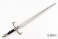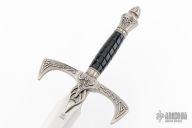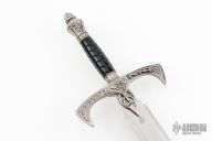 Kit Rae, well-known fantasy artist and weapon designer, crafted Elexorien, a high quality sword from his epic mythological tale "The Tale of the Swords of the Ancients and Other Blades of Power", and at your request, he is reissuing it! Elexorien, Measuring 36" overall, this sword features an intricately detailed and distinctive cast metal pommel and guard with an antique silver finish. The 28" blade is satin-finished, 3Cr13 stainless steel with a deep etched runic design.