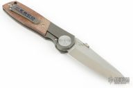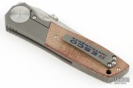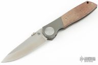 This knife by Resco Instruments features a satin finished blade with a large thumb disc. The handle has a bead blasted titanium frame with a matching tip up pocket clip and brown micarta scales. Excellent Condition.