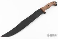 This MOAT by Busse Custom Shop features a clip point blade with black coating, .337" blade stock and 2.221" blade depth, full tang construction. The handle has brown canvas micarta scales and an extended tang with lanyard holes. New from maker.