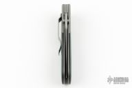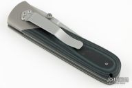 This LDC-8 by Kit Carson features a bead blast finished drop point partially serrated blade with notched thumbrest and a dual thumbstuds. The handle has finely bead blasted titanium bolsters, black/green G-10 scales, black linen micarta backspacer, bead blasted titanium liners, stainless steel pocket clip that is tip down carry. Nice detent, blade seating and lockup. Very smooth action. Comes with a zipper case. Has a couple light scuffs, otherwise excellent condition.