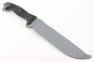 This Anorexic Fusion Battle Mistress by Busse features a silver coated blade with .212" blade thickness and 2.214" blade depth, full tang construction. The handle has black G-10 scales. New from maker!