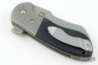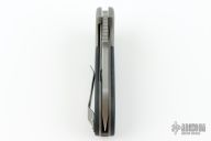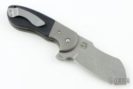 This knife features a stonewash finished sheepsfoot blade with notched thumbrest and flipper. The handle has orange peel textured stainless steel bolsters, black G-10 scales, bead blasted stainless steel liners and backspacer, and a tip up stonewashed stainless steel clip. #0514, features IKBS. Excellent condition.