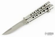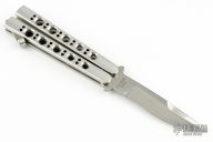 This vintage Model 35 Balisong from benchmade features a polished drop point blade with swedge. The handle is comprised of integral steel construction. T latch on pommel. Includes original sheath. Excellent condition.