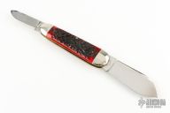 This Wildcatter Knife by Schatt & Morgan features 2 mirror polished blades with nail nicks. The handle has nickel silver bolsters, front and rear, jigged bone covers, brass liners and stainless steel springs. Has some light scratches, otherwise excellent condition. Comes with original box.