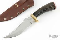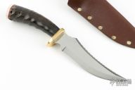 "Lonewolf and Sons was founded by J.A. Lonewolf over 20 years ago. He is an artisan who skillfully combines the blacksmith trade with illustration, sculpture, and scrimshaw. This combination has created his high end art of knife making. Each piece is original. No two works are the same, even repeated orders. Specializes in high-art working and using straight knives of his own design, particularly Bowies, hunters, camp/utility and fine steel blades. Forges Damascus and high-carbon steel."