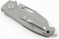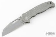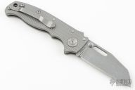 The AD20.5 by Demko Knives features the impressive Shark Lock and an even more impressive price point. The Shark Lock mechanism is situated on the spine of the knife and operated with a ramp-like ‘fin’, allowing you to flip the blade open and closed at will. It's probably the best thing about this knife and design, how quickly it can be deployed and ready for action. It acts as a blade launcher and a little wrist action is all it needs. This one has a stonewashed blade and bead blasted and texture milled titanium handle. Comes with plastic tube and extra clip. Excellent condition.