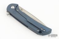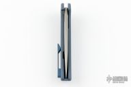 The Crux flipper from Ferrum Forge features a satin finished blade with swedge and flipper. The titanium handle has a bead blast and anodized finish. Pocket clip is positioned for tip up carry. The lockbar has a steel lockbar insert with overtravel stop. Blade is centered when closed, smooth flipping action. Comes with original box and zipper case. Excellent condition.