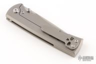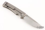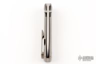 This Chaves Ultramar Liberation Drop point features a satin finished blade with the Chaves logo. The handle is made up of tumbled titanium, skull pocket clip (positioned for tip up carry), and a matching titanium backspacer. Comes with original box and extra clip. Excellent condition.