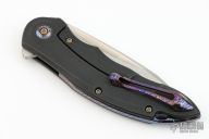The Makani features a hand rub satin finished drop point blade made from CPM 20CV stainless steel, keeping this folding knife looking and feeling brand new long after you take it out of the packaging. The handle is made from black anodized titanium and features a stunning flamed titanium inlay that makes this piece truly one-of-a-kind. Comes with original box, zipper case, and papers.  S/N 247/300.  Excellent Condition.