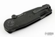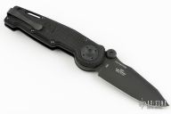 This 0500 G&G Hawk design by Zero Tolerance features a black clip point blade with dual thumbstuds. Textured G-10 scales for maximum grip. Has a thumb button release for the blade. Makes a great "gun bolt" type sound when it locks up! Excellent condition.