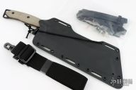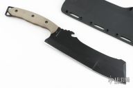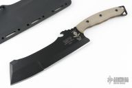 This C.U.M.A. King Destructo by Work Tuff Gear features a black SK85 blade with notched thumbrest, .232" blade stock and 2.751" blade depth, full tang construction with tan G-10 scales and brown liners. Comes with a Kydex sheath and original box and extras. New from maker!
