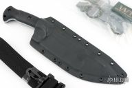 This Nomad Field Knife by Work Tuff Gear features an acid wash finished Bohler K340 Steel blade with a saber grind that has a convex cutting edge, .249" blade stock and 2.226" blade depth, full tang construction with black G-10 scales with blue G-10 liners. Comes with a nicely fitted kydex sheath and zippered case. New from maker.