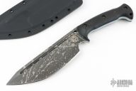 This Nomad Field Knife by Work Tuff Gear features a splatter finished Bohler K340 Steel blade with a saber grind that has a convex cutting edge, .249" blade stock and 2.226" blade depth, full tang construction with black G-10 scales with blue G-10 liners. Comes with a nicely fitted kydex sheath. New from maker.