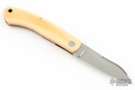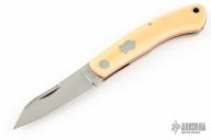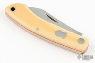 This Slipjoint by Ricardo Romano features a hand rub satin finished blade with nail nick. The handle has Westinghouse paper micarta covers with stainless steel escutcheon and orange G-10 liners, stainless steel liners and spring. Has half-stop, flush in all positions. Has a couple light scratches, otherwise excellent condition.