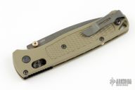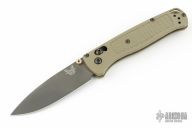 The Benchmade Bugout features a drop point blade with a black finish. It's a manual opener with ambidextrous thumb studs. This AXIS lock has green handles with black hardware, lanyard hole. Excellent condition.