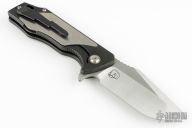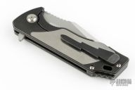 Satin finished blade, polished titanium inlays, black frame and tip up clip. Comes with original box and coa. Excellent condition.