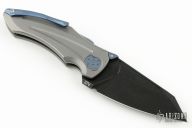 Our goal was to lighten this beast while keeping it amazingly strong, so we 3D-machined it inside and out. This is our first button lock flipper! (And what a challenge it was to pull off!) And finally, we added a little “bling” by anodizing the thumb studs, pocket clip, and backspacer either Bronze or Blue – very subtle and muted colors that set off the look of the knife in a way we haven’t tried before!