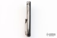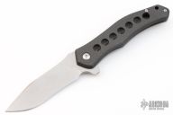 The Sprocket was designed by Jerry McGinnis. It has a stonewashed blade with notched thumbrest and flipper. The handle has a carbon fiber and bead blasted titanium frame with a carbon fiber backspacer and bead blasted titanium tip up clip. Rides on caged ceramic bearings to ensure smooth action. Comes with zippered case. Excellent Condition.