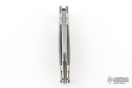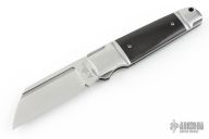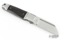 This Pocket Butcher slipjoint by Andre De Villiers features a satin finished wharncliffe blade with fullers. The handle has a two-tone stainless steel frame, ebony wood covers stainless steel spring and lanyard hole at the butt.  Nice smooth function, lockup and blade seating. Comes with velcro pouch. Excellent Condition.