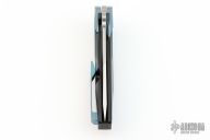 This one has a satin finished blade with notched thumbrest and flipper. the handle has a black titanium frame with anodized titanium accents, comes with original anodized titanium accents. Comes with original zippered case and COA dated 9-1-22 and #277/550. Excellent condition.
