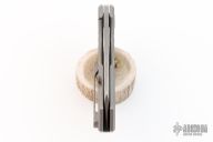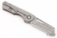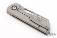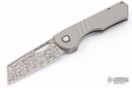 This EDC Foundry Yeager-M V3 by Brian Brown features a wharncliffe Damasteel blade with thumbhole. The handle has a bead blasted titanium frame, titanium pivot collars, tip up clip and backspacer. Comes with a zippered case, card and lube. Excellent condition.