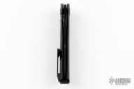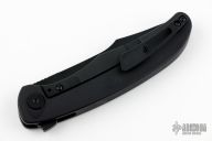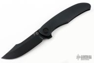 This Xerx by Adam Purvis features a black blade with a notched thumbrest and flipper. The handle a black titanium frame and a matching tip up clip. Includes the original box and zippered case. Excellent condition.