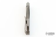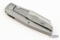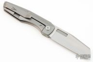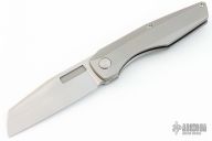 This Axon First Run Folder by Vero Engineering features a hand rub satin finished blade with notched thumbrest and thumbhole. The handle has a bead blasted titanium frame with stainless steel lockface incert, tip up clip with hidden screws, titanium backspacer. Rides on bearings, nice detent, lockup and blade seating. Includes a padded zippered case and coa. Excellent Conditon.