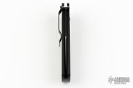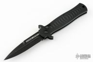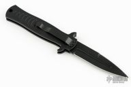 This collaboration between Darrel Ralph and Ryan Wilson of Wilson Tactical is the Stiletto Auto with black aluminum handle. Black coated blade with blood groove in the center and a ground but not sharpened top edge. Smooth firing auto with a strong lock up. Excellent condition. Comes with original box and papers.