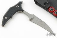 The BEE is a push dagger collaboration with Bastinelli Knives that is both stylish and highly effective. It's a tactical knife through and through, and we honestly can't think of a better knife we'd want in a close-quarters combat (CQC) encounter than this. Its design characteristics target specific CQC needs such as swift, effective deployment, reliable cutting and penetration, low visibility profile, modular carry options, and robust construction. Straight punches, jabs, and hammer fist strikes yield tremendous cutting potential with minimal training or effort. The included friction fit Kydex sheath is outfitted with a discreet carry concept (IWB) clip that keeps the knife close at hand and poised to strike. It shines in a last-ditch tactical scenario but works equally well as an everyday carry fixed blade. Comes with original box, papers, and Kydex sheath. Has a bead blasted blade, standard edge, and G-10 handle. Excellent condition.
