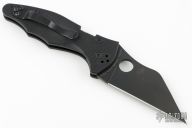 This Yojimbo 2 by Spyderco features a black finished wharncliffe blade with thumbhole. The handle has a black G-10 frame with stainless steel liners, lock is on the spine of handle. 4-way reversible stainless steel clip. Nice detent, lockup and blade seating. Comes with original box and papers. Has a couple light scuffs, excellent condition otherwise.