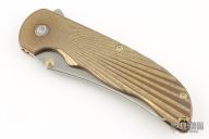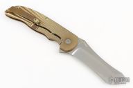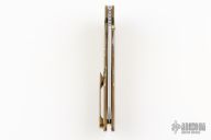 This Norseman (#4868) by John Grimsmo features a stonewashed blade with a single anodized titanium thumb stud, notched thumb ramp and flipper. Stonewash and anodized finished titanium frame with anodized titanium screws. Has a matching clip with hidden screws. Very smooth action that requires no wrist movement. Nice detent, lockup and blade seating. Rides on ceramic bearings. Comes with original box and COA. Excellent condition.