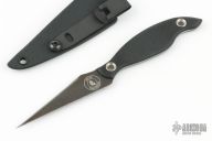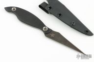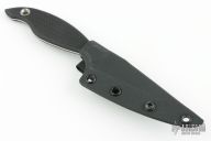 The “The Guild” - Libre Knife by JB Knife and Tool features a black blade with .061" blade stock and .830" blade depth, full tang construction. The handle has black G-10 scales. Comes with a kydex sheath. Has some patina, otherwise excellent condition.