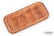 This leather slip sheath by Robertson Leather Works features peanut alligator leather. It is 3.75" long by 1.75" wide. New from maker!
