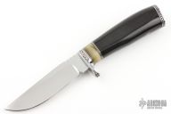 "In 1973 I started working for the British Columbia government as a wildlife control officer, hunting problem wildlife. Later I worked as a conservation officer. All my life I have hunted, fished, trapped and gunsmithed as a hobby, and knives have always been an important part of my life, from my bicycle trap line as a kid, to skinning problem wildlife when I worked as a wildlife control officer, to dressing the moose or deer I hunted for the freezer. I made my first knife in 1976, and in 1996 my wife Judy and I decided to go into the knife business full time. I make mostly upscale working hunting knives with a bowie or miniature now and again. Each knife is a unique combination of materials. Although I have used many different steels, I have found 440-C to be the most versatile. Heat treated to 57 Rockwell for optimum edge retention and ease of sharpening, this steel has proven itself in both working and collector knives. Other steels will be used for special order, and I enjoy using Damascus for collector pieces."