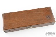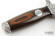 This Collectors Series Limited Edition knife by Smith and Wesson has the serial number of 0969. The blade features a polished and laser engraved graphic. .235" Blade Stock. 1.325" Blade Depth. The handle is comprised of a sterling silver guard and pommel with dymondwood handle over hidden tang construction. Sterling Silver inlay marked "Collectors Series 0969" on "B" side of handle. Includes the original wooden display case. Excellent condition.