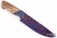 This Fighter from PJ Ernest features a Blued Damascus blade with fileworked spine, .138" blade stock and 1.680" blade depth, full tang construction. The handle has blued Damascus bolsters and mammoth ivory scales. Excellent condition. Comes with a zippered case.