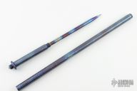 This Titanium Combat Stick by Pavlin Shahanov features a flame finish and a hidden spear inside that can screw on to the end. 16" spike piece from end to end, 35.5" open. New from maker.