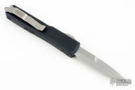 This Ultratech by Microtech is the 2019 Blade Show Special. It features a bayonet ground double-edged stonewashed blade. The handle has a black aluminum frame with blasted stainless hardware and tip up clip. Comes with a Microtech box, silver coin and papers. Excellent Condition.