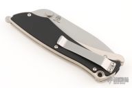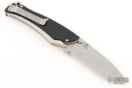 This Griplock Folder by Boker features a bead blasted blade with dual thumbstuds, notched thumbrest and flipper. The handle has black aluminum scales and a silver aluminum frame, has a tip up reversible stainless steel clip. Has a couple light scuffs, otherwise excellent condition.  Comes with a black nylon sheath.