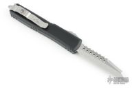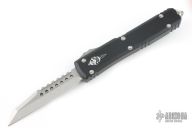 This Ultratech by Microtech Knives features a stonewashed Warhound blade with satin flats and false top edge. The handle has a black aluminum frame with tip down blasted stainless steel clip and hardware. Comes with original box and papers. 10/2022, S/N 580. Excellent condition.