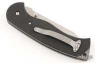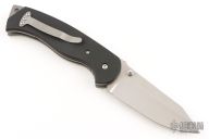 This Hammerstrike linerlock by Greg Lightfoot features a satin finish blade with dual thumbstuds and notched thumbrest. The handle has textured black G-10 scales, bead blast titanium liners, bead blasted stainless steel tip up clip. Nice detent, lockup and blade seating. Comes with a zippered case. Has a couple very light scratches, otherwise excellent condition.