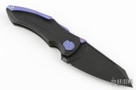 Our goal was to lighten this beast while keeping it amazingly strong, so we 3D-machined it inside and out. This is our first button lock flipper! (And what a challenge it was to pull off!) And finally, for this second run of the Sumo, we added a little “bling” by anodizing the thumb studs, pocket clip, backspacer, AND pivot in Blue, Purple or Tan – very subtle and muted colors that set off the look of the knife in a way we haven’t tried before!
