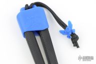 The Talisong Z comes with a blue Bali-Boot that was developed as a safe and innovative way to carry your latchless balisong. It is soft and flexible, and won't mar up the handles. It is paired with a paracord lanyard and blue silicone fly bead. The lanyard can be threaded through a belt and used as a static cord, or you can just slip the entire thing into your pocket.